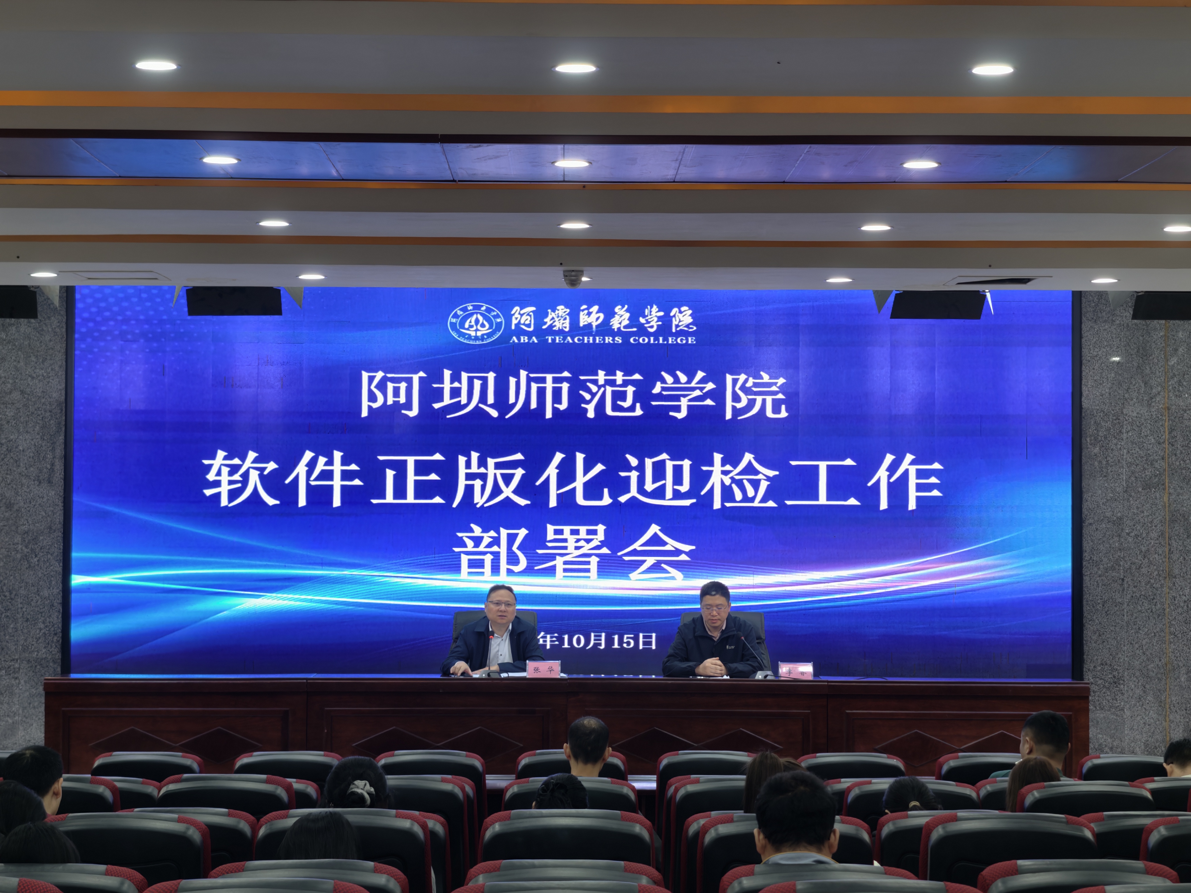 【本网讯】为推进学校软件正版化工作,2025年10月15日上午9:00,教育信息中心组织召开软件正版化迎检工作部署会。阿坝师范学院副院长张华出席会议,会议由教育信息技术中心主任李睿主持,各二级单位网络安全员参会。