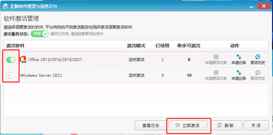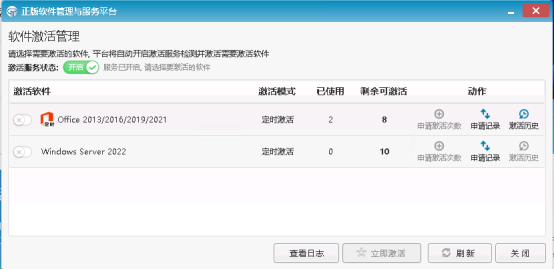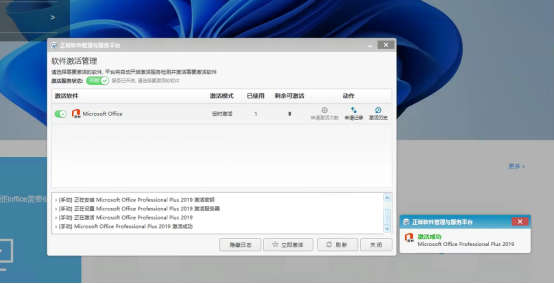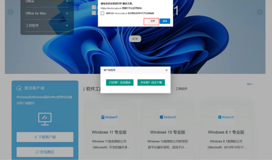 2) 登录成功后,浏览器会弹出确认框,点击打开,会出现软件自动弹出商品激活管理窗口(Windows和Office默认各分配10次激活次数)
